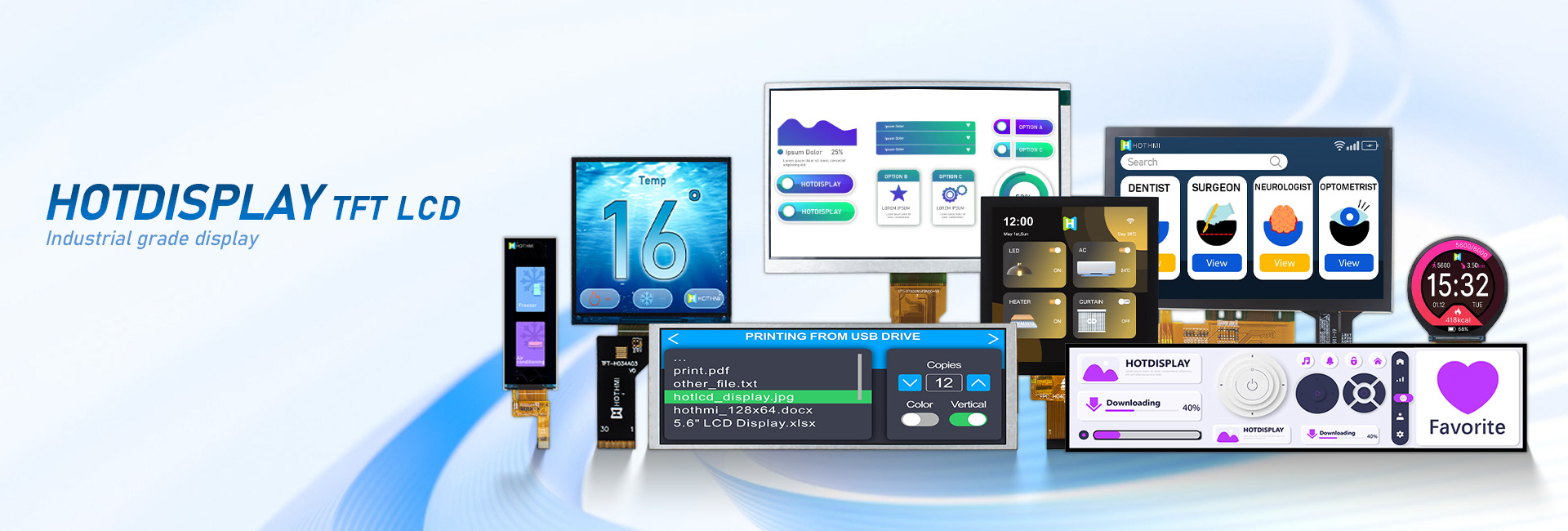 HOTLCD創立22年來,已開發出超過2000標準和非標準液晶顯示屏及模組,廣泛應用于人工智能、5G通訊、無人機、物聯網、車聯網、智能家居、智能穿戴、智慧交通、儀器儀表、醫療設備、工控設備、電力設備、勘探設備、航空航天、軍事裝備等諸多先進領域。
